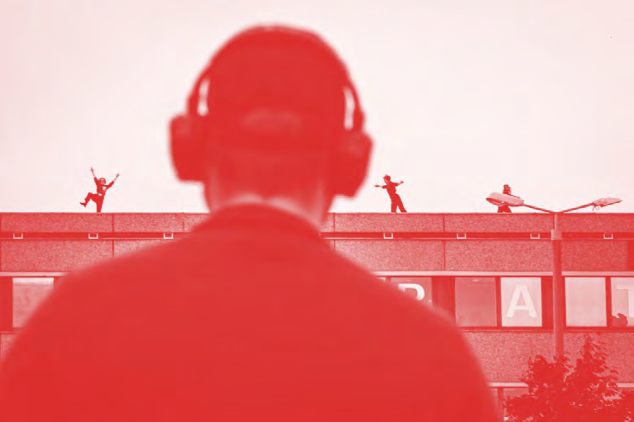 Im Audiowalk Rostiger Stahl - Flucht vor der fremden Erde vom Kunstverein Siegen und dem Bruchwerk Theater begleitet das Publikum einen außerirdischen Forschungsroboter bei seiner Expedition. Die Antennen auf dem Dach eines Bunkers werden aus dieser Perspektive zu einem Mega-Roboter und Skulpturen zu metallisierten Menschen.